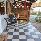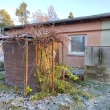 Lage, Größe, Aufteilung und Infrastruktur sind typisch für eine Ferienanlage: Das Häuschen ist Teil einer Bungalowzeile – wie überall in der Siedlung üblich. Die Terrassenüberdachung teilt man sich mit den Nachbarn zu einer Seite. Dank kleiner Hecke und Terrassenstellwand ist für Privatsphäre gesorgt. Der kleine Gartenbereich zur Terrassenseite bietet Platz für die Sonnenliege und das Grillfest mit Freunden. Im Gegenzug genießt man die "Rundum-Sorglos"-Infrastruktur der Feriensiedlung ähnlich einem Campingplatz. Strom mit eigener Säule, Trinkwasser und Abwasser liegen an. Die Abwasserleitungen wurden in der Siedlung erst 2024 erneuert.