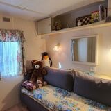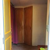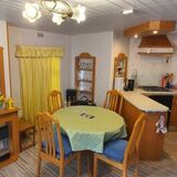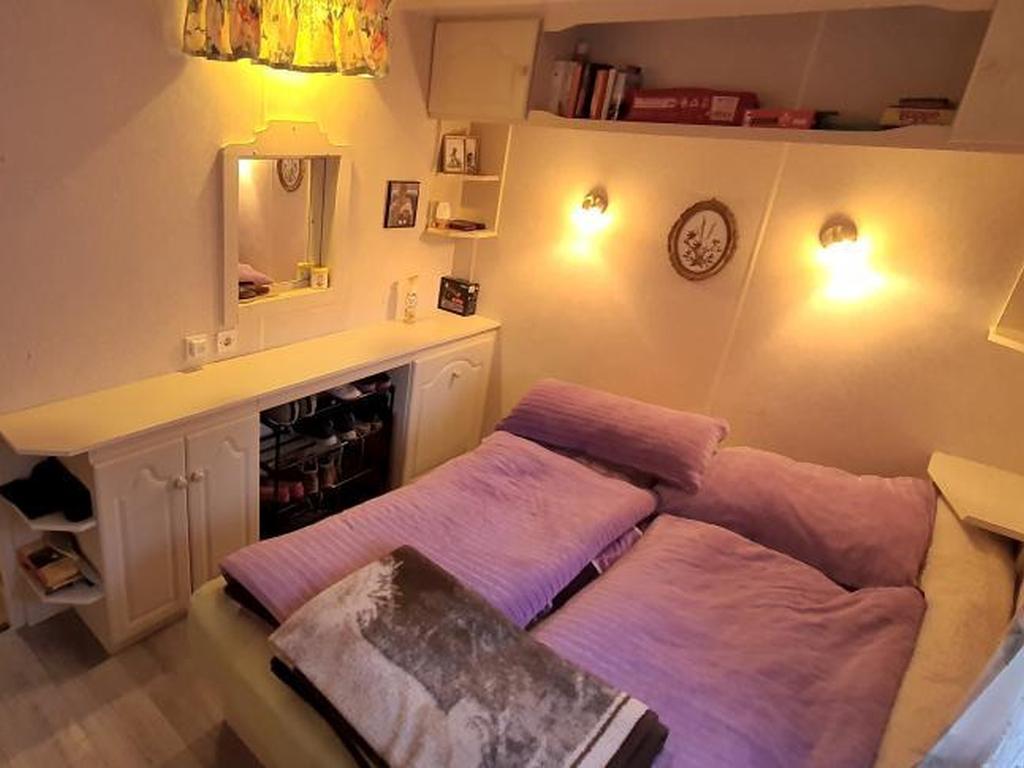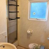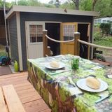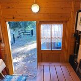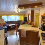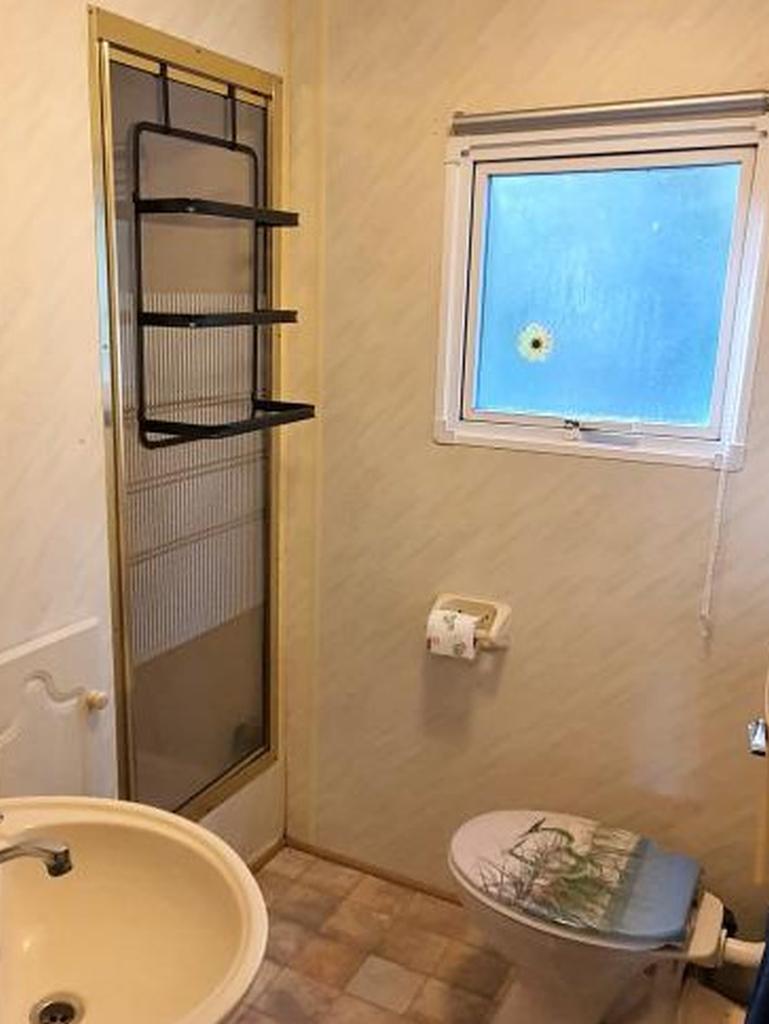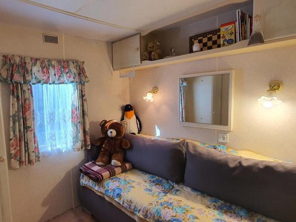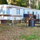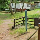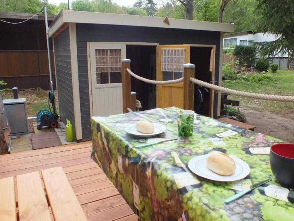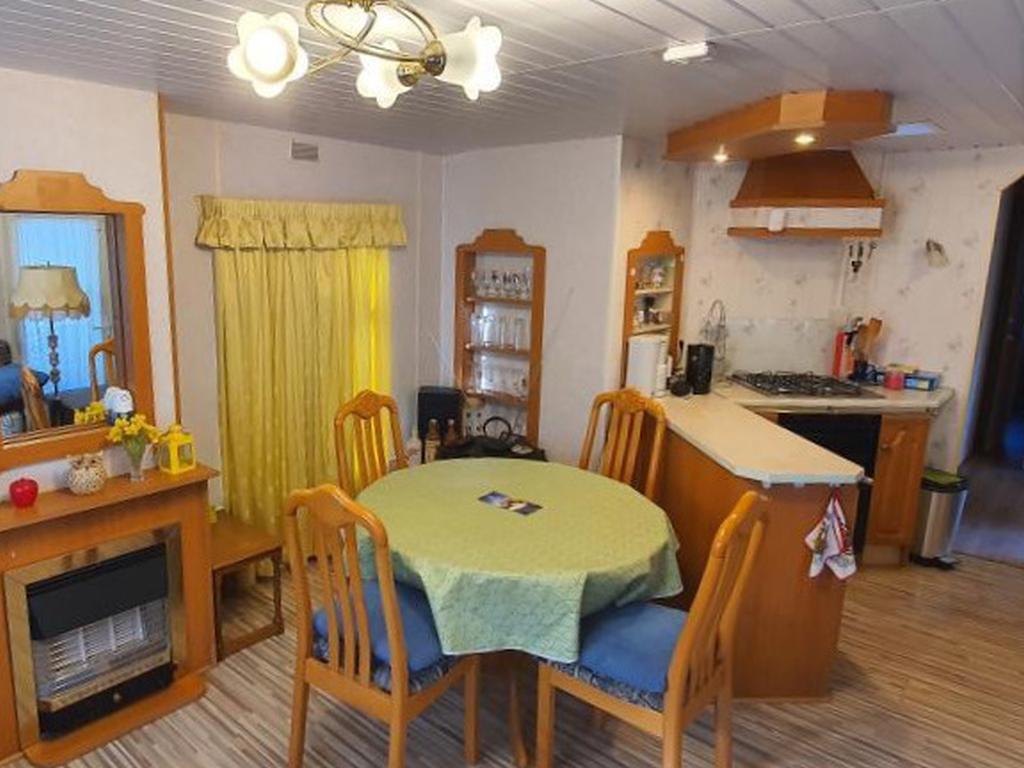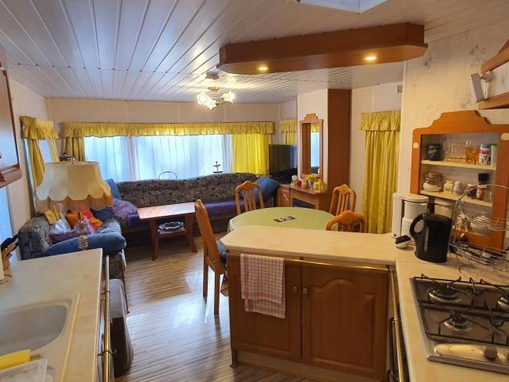 Das ca. 40 m² große Mobilheim steht auf einem Pachtgrundstück am Waldrand und gehört zum ca. ein km entfernten Campingplatz. Es bietet einen Wohnraum mit offenem Küchenbereich, zwei Schlafzimmer, ein Bad mit Dusche, WC und Waschbecken sowie ein separates Gäste-WC und einen kleinen Flur. Die Aufteilung eignet sich ideal für Familien – im Wohnbereich entstehen durch das Ecksofa zwei weitere Schlafplätze, so dass auch Übernachtungsgäste willkommen sind. Für Wärme sorgt eine mit Propangas betriebene Kaminheizung. Auf der Terrasse lässt sich wunderbar im Freien frühstücken oder der Abend entspannt ausklingen. Im angrenzenden Gartenhaus befinden sich eine kleine Werkstatt sowie ein Lagerraum für Gartenmöbel und Geräte. Ein Teil des Inventars verbleibt im Mobilheim, weitere Gegenstände können nach Absprache übernommen werden.