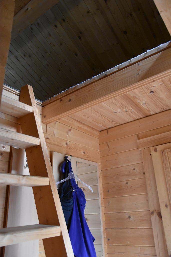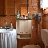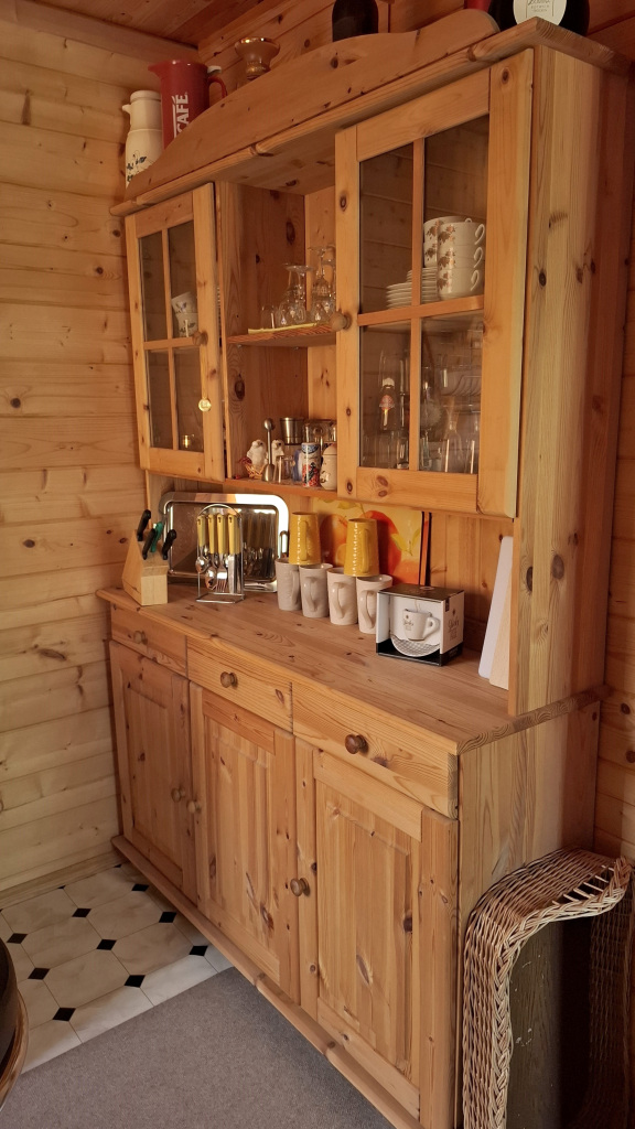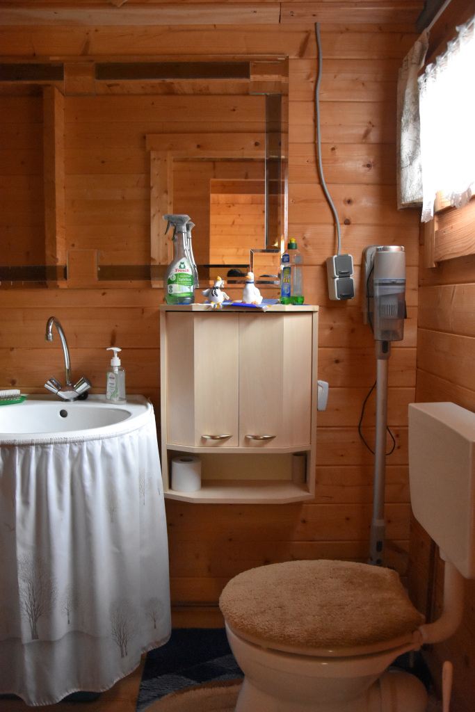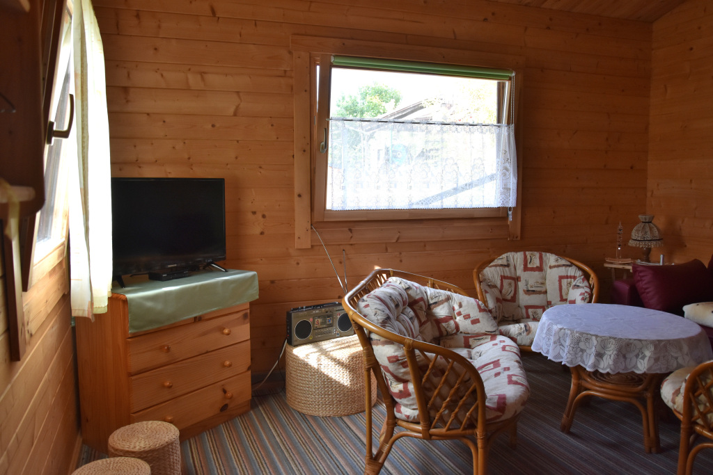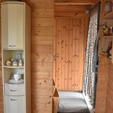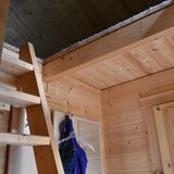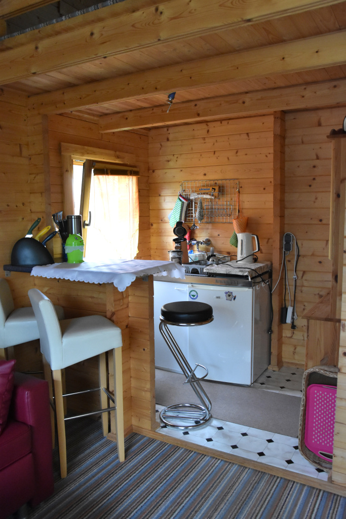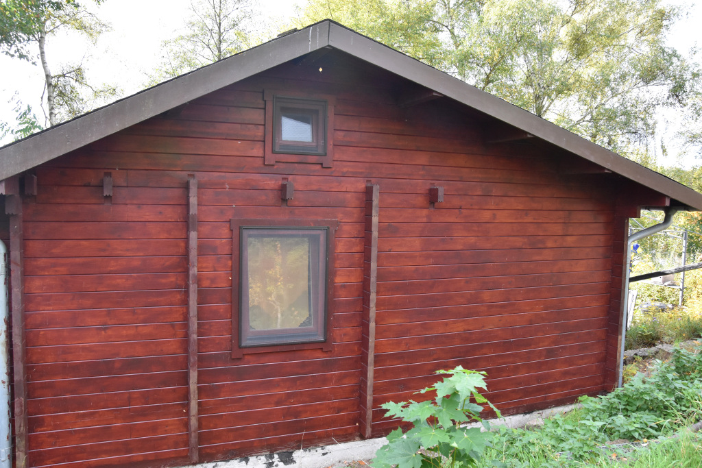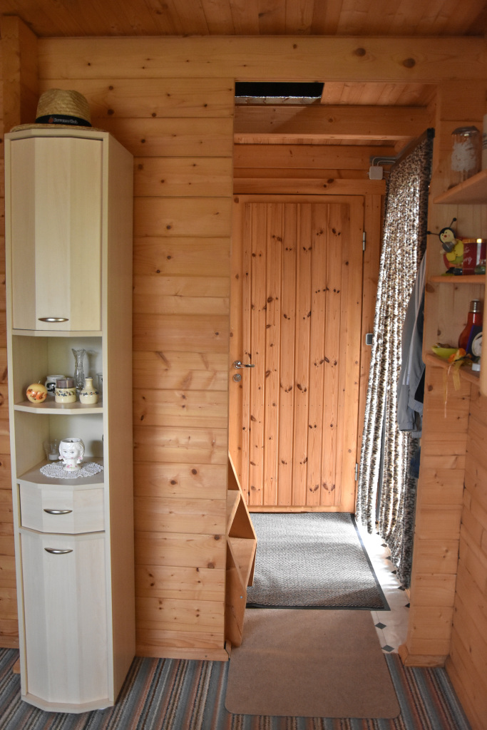 Das voll ausgestattete Blockbohlenhaus verfügt auf seinen 24 m² über einen Aufenthaltsraum mit Küchenecke und Schlafboden sowie ein Bad. Bisher wurde eine Solardusche genutzt. Eine Dusche kann im Bad nachgerüstet werden, der notwendige Anschluss ist vorhanden. Strom und Trinkwasser liegen an, das Abwasser wird in einer Grube entsorgt. Häuschen und Garten werden mit allem Mobiliar und Inventar verkauft.