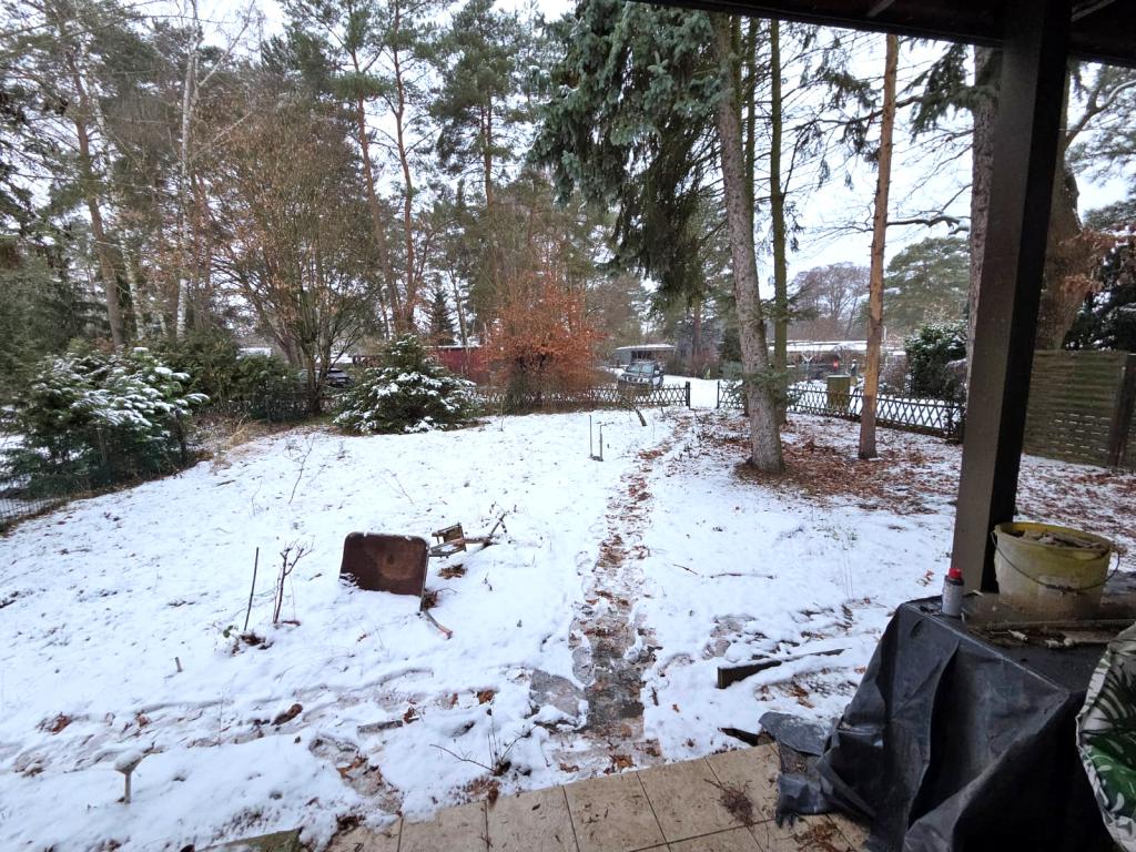 Die Erschließung umfasst Strom, einen eigenen Brunnen für die Wasserversorgung und eine abflusslose Sammelgrube für die Entsorgung. Das Grundstück ist Teil einer großen, locker bebauten Wochenendsiedlung und grenzt direkt nur an ein Nachbargrundstück an. Es ist über zwei Zufahrten von ruhigen Anliegerstraßen aus erreichbar. Das Auto kann auf dem Grundstück abgestellt werden.