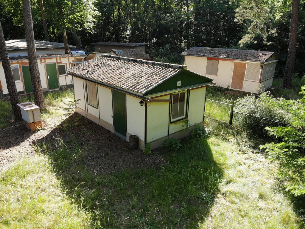 Grundstück und Aufbauten wurden die letzten Jahre nicht genutzt. Die bisherigen Gartenlauben mussten für den neuen Wendekreis des Anliegerweges weichen. Trotz des ungewöhnlichen Zuschnittes bietet das Grundstück ausreichend Platz z.B. für den Neubau eines massiven Wochenendhauses, eines Tiny Houses oder auch ein Mobilheim mit bis zu 60 m² Grundfläche. Hierzu holt man eine Baugenehmigung ein, ein positiver Bauvorbescheid liegt dem Eigentümer bereits vor. So hat man hier beste Voraussetzungen, sich seine pflegeleichte grüne Oase am Wald und nah am Wasser zu schaffen!