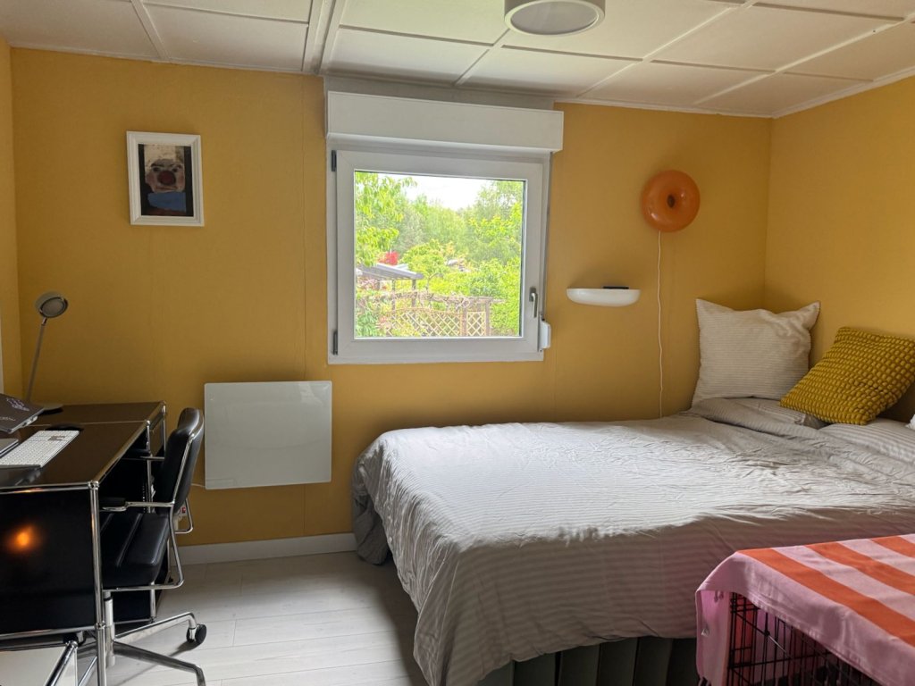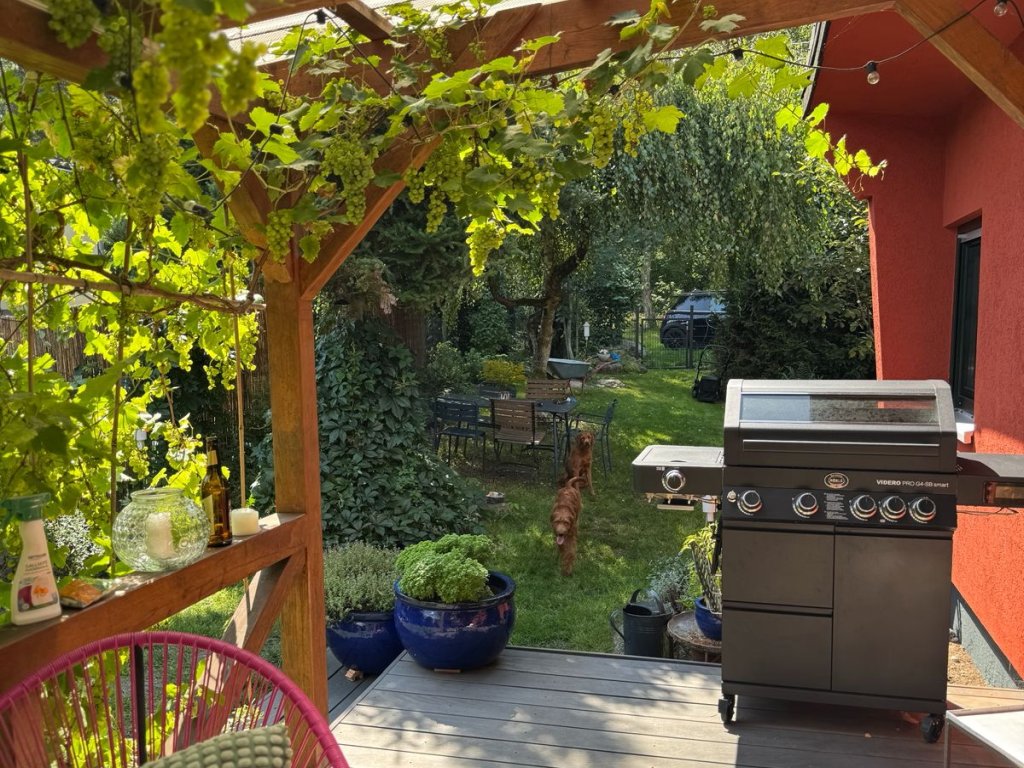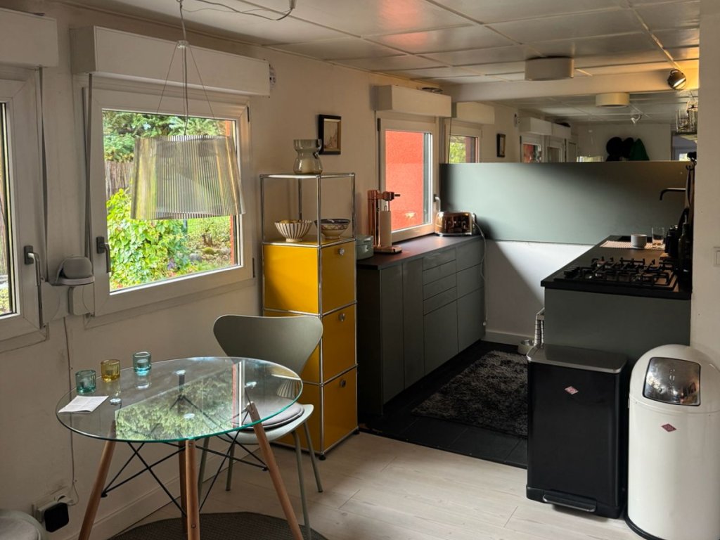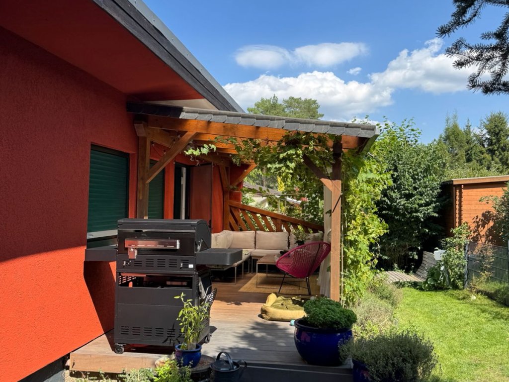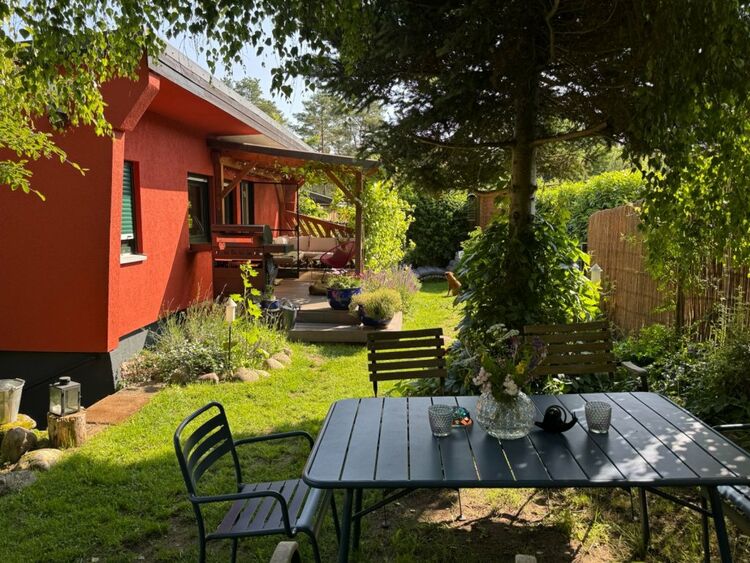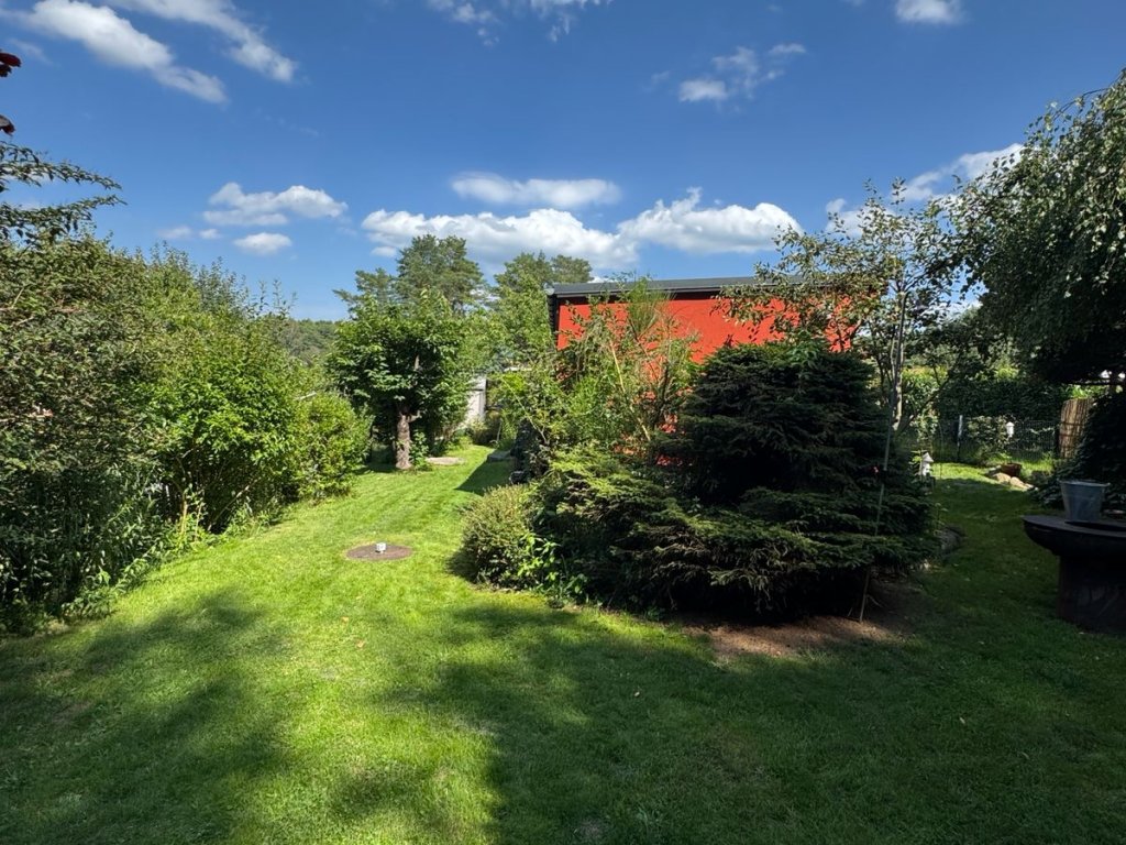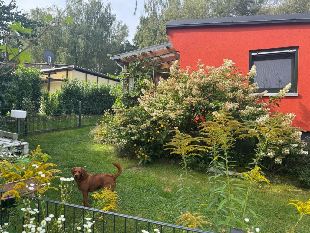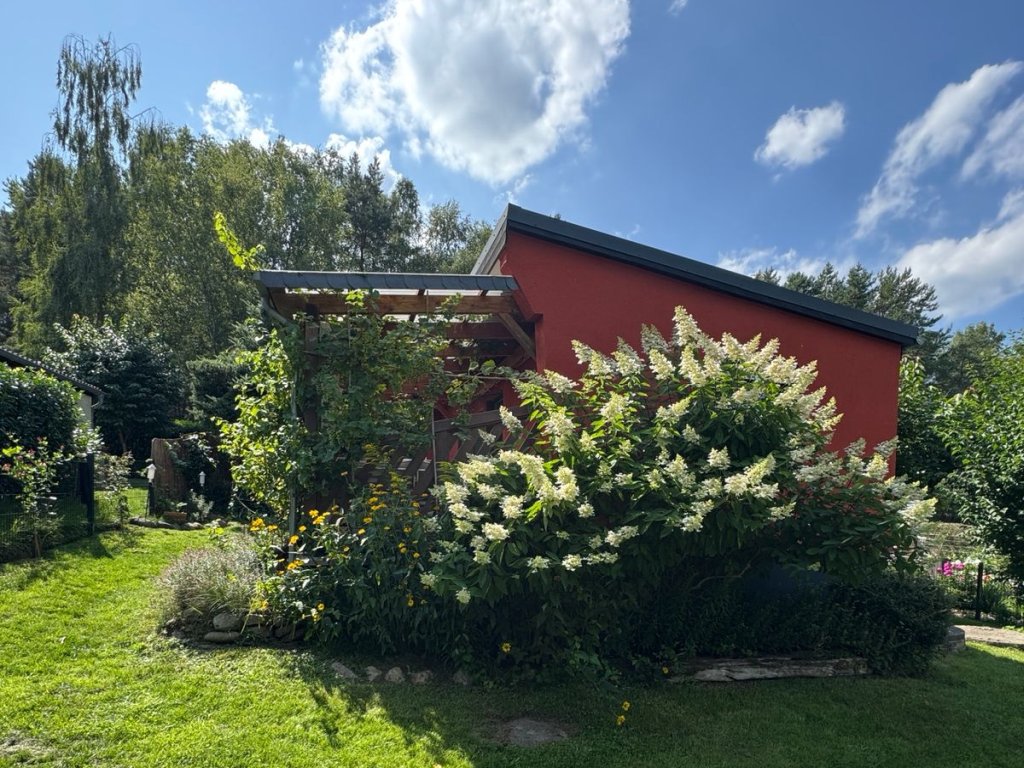 Das teilunterkellerte Wochenendhaus umfasst ein offenes Wohnzimmer, einen Küchenbereich, ein Schlafzimmer sowie ein Bad mit WC und Dusche. Das Haus wurde stets modernisiert. So wurden 2005 die Dämmung, Dach, Elektroinstallation, Fenster und Türen erneuert. 2021 wurde das Bad, die Küchen und die Räume überarbeitet und der Garten samt Zaun neugestaltet. Auf der schönen mit einer Pergola und rankendem Wein eingefassten Terrasse lässt sich ein Tag auf dem Wasser perfekt ausklingen und gepflegte Grün des blühenden Gartens genießen.