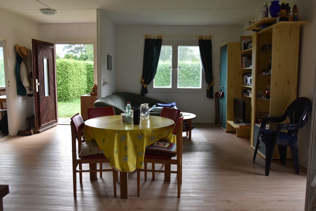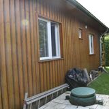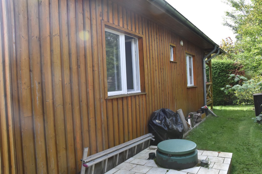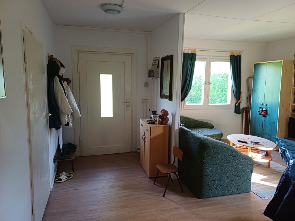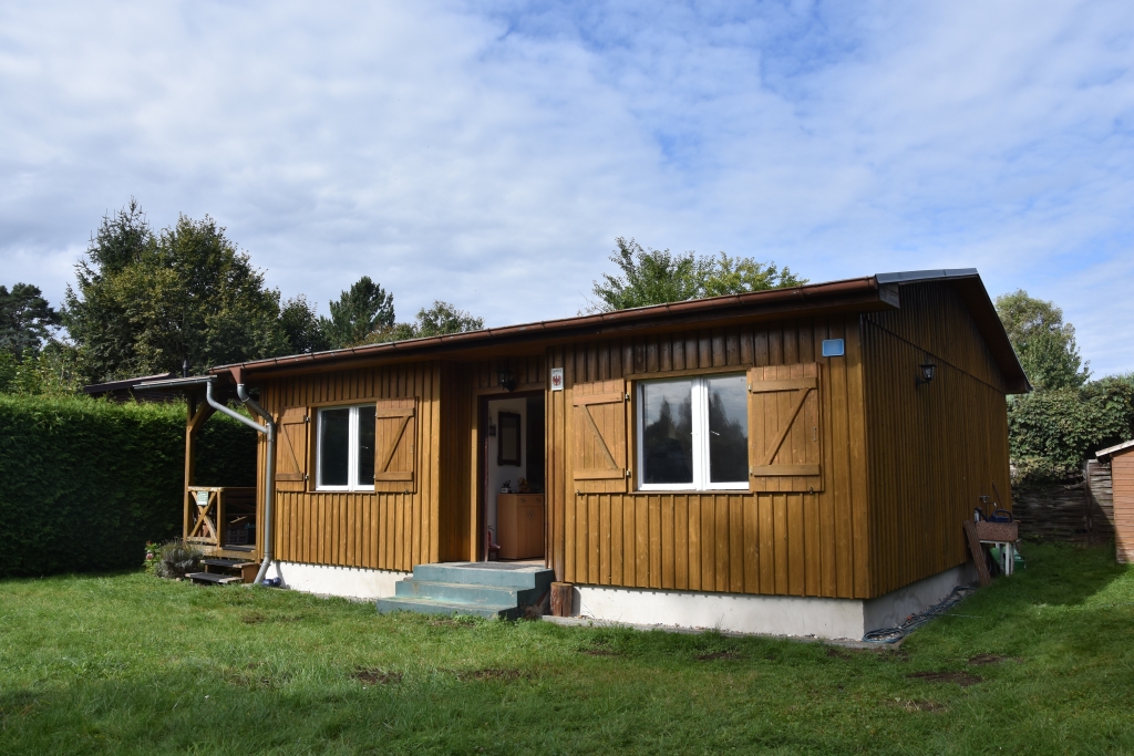 Das Wochenendhaus ist ca. 65 m² groß, in Leichtbauweise errichtet, gedämmt und mit robustem Lärchenholz verkleidet. Dank der offenen Gestaltung und Raumaufteilung hat es eine luftige Atmosphäre und ist bestens für eine Familie geeignet. Von der kleinen Diele gelangt man in den großen Wohnraum, der nahtlos in die offene Küche übergeht. Die zwei Schlafzimmer bieten bequem Platz für die Übernachtung. Das Bad ist modern gefliest und mit Dusche und WC ausgestattet. Letzte Sanierungsmaßnahmen 2023 umfassten u.a.: den Badumbau samt neuen Fliesen, Armaturen und Boiler, die Erneuerung der Wasserleitungen in Bad und Küche sowie neuen Fußbodenbelag. Das Dach erhielt ebenfalls 2023 eine neue Eindeckung mit Bitumenbahnen. Das Grundstück ist für die Nutzung in der schönen Jahreszeit ausgelegt, dauerhaftes Wohnen ist nicht zulässig.