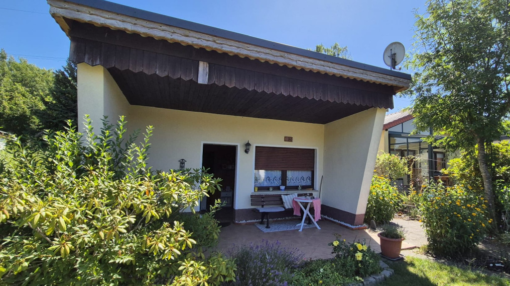 Das Wochenendhäuschen ist aus Stein gebaut und bietet auf etwa 30 m² Platz für ein Paar oder eine kleine Familie mit einem kombinierten Wohn-Schlaf-Raum, einer Küche und einem modernen Bad mit Waschbecken und WC. Für eine Dusche kann man sich eine sichtgeschützte Ecke mit Solardusche im Garten einrichten.  Alles ist sofort nutzbar, der Verkauf erfolgt mit allem Inventar.  Die Fenster sind mit Jalousien verschließbar.