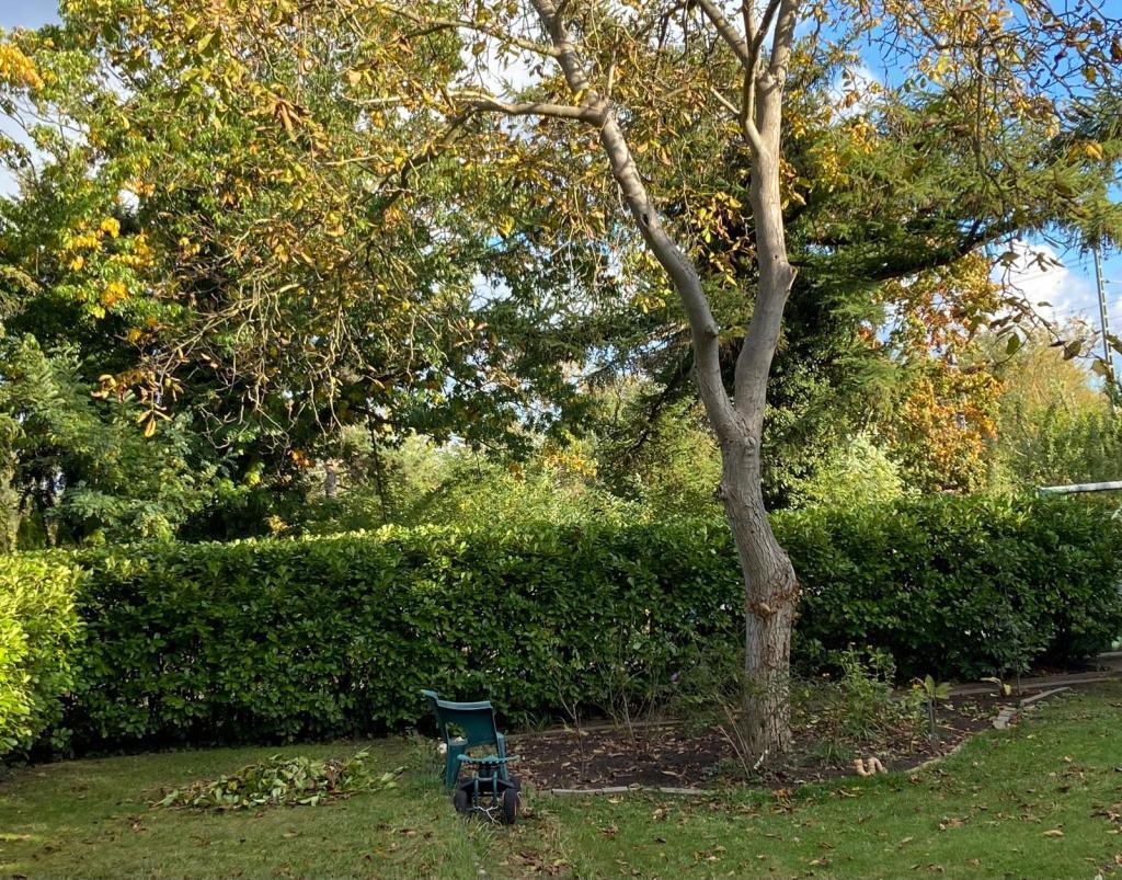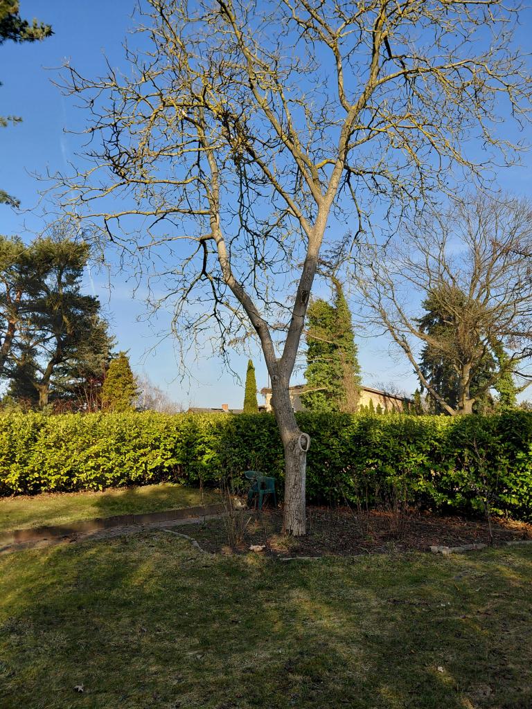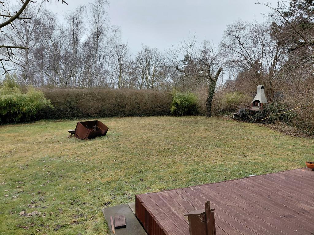 Das Grundstück ist teilweise von einer Hecke umgeben, das Haus ist mittig positioniert. Wer Freude am Gärtnern hat, kann Hochbeete anlegen oder weitere Flächen für Stauden, Ziergräser und Kräuter gestalten. Auf dem Grundstück wachsen zwei Kirschbäume, ein Mirabellenbaum, ein Walnussbaum, Nadelbäume sowie Bambus und vieles mehr. Ob Grillabend mit Freunden im Garten oder entspannte Stunden mit einem guten Buch auf einer der beiden Terrassen – hier findet jeder seinen Lieblingsplatz. Auch für Kinder bietet das Grundstück ausreichend Raum zum Spielen, Entdecken und Toben.