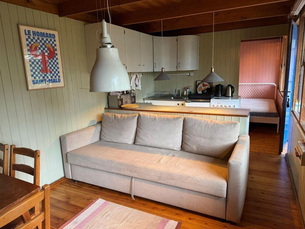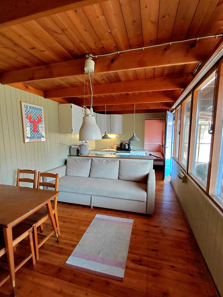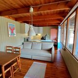 Das stabil gebaute Wochenendhaus ist rund 30 m² groß und eignet sich für Familien, Pärchen oder Freundespaare, die einen grünen Platz innerhalb der Stadtgrenzen Berlins und Havel-nah suchen. Die Aufteilung ist mit Schlafzimmer, Wohnzimmer mit Essplatz und Couch sowie abgetrennter Einbauküche zweckmäßig. Das Bad mit Holzverkleidung ist über zwei Türen von innen und über die Terrasse zugängig. Auf der Rückseite gibt es einen kleinen Kriechkeller als Lagerkeller. Die großzügige Fensterfront von Wohnzimmer und Schlafzimmer bietet einen weiten Blick ins Grüne, so dass man sich auch innen nicht eingeengt fühlt. Die große, überdachte Terrasse führt über die gesamte Vorderseite und erweitert das Wohnzimmer ins Grüne – ein schöner Platz zum Verweilen und Chillen!